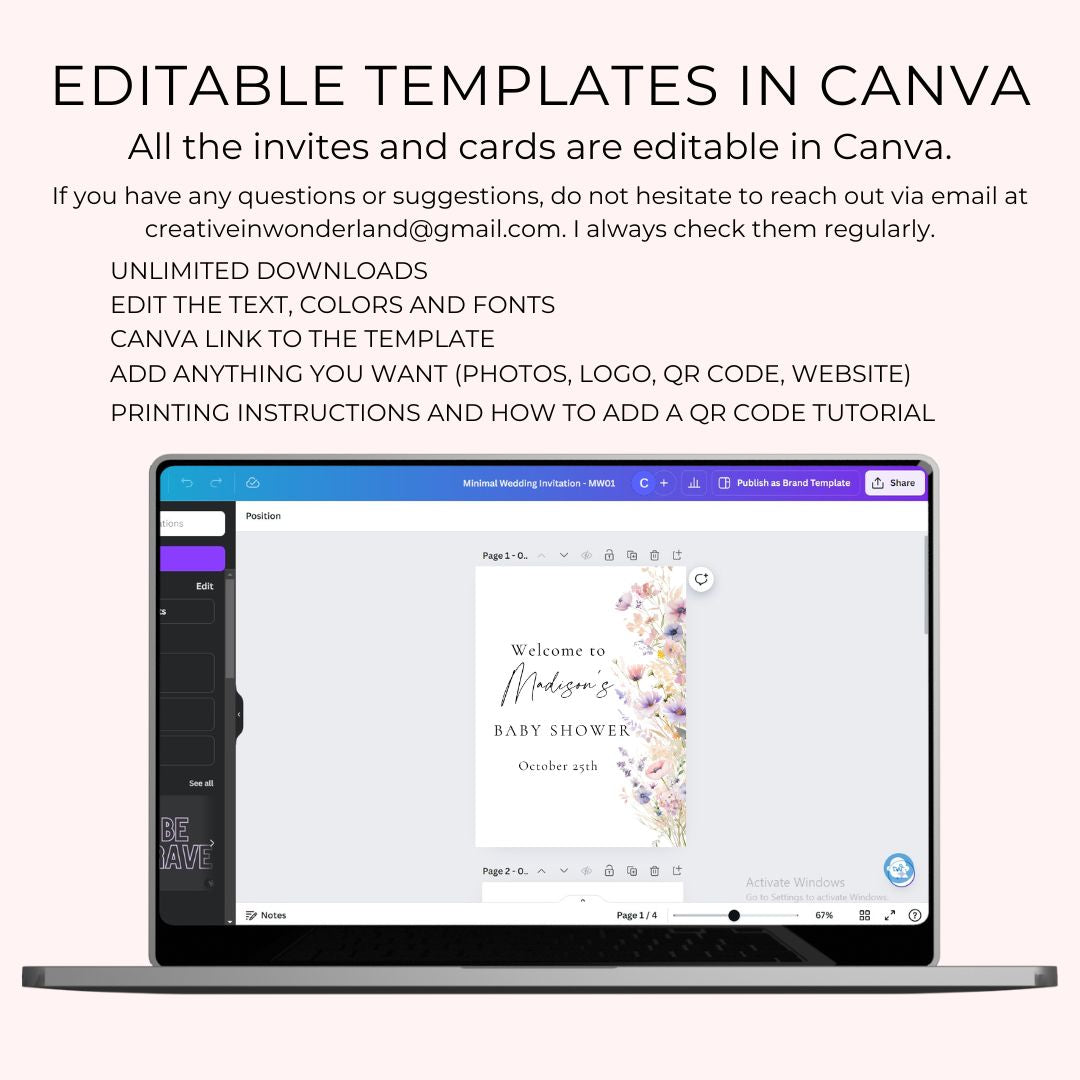 This digital printable sign can be customized in Canva and displayed at your entryway, gift table, or dessert table.